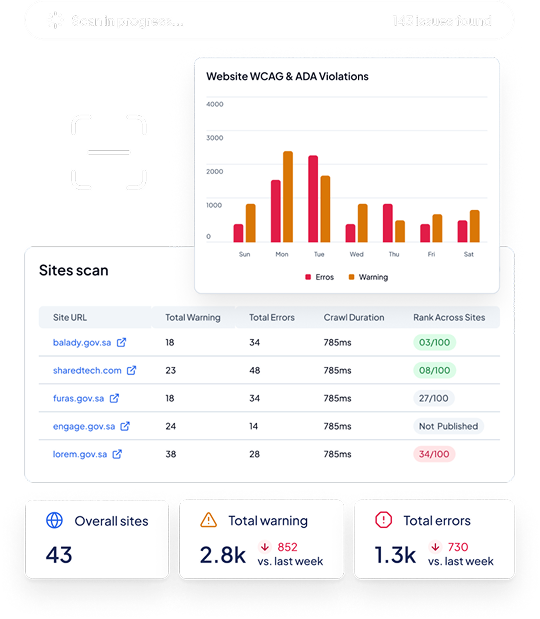 Easily perform comprehensive scans of your site to quickly identify issues and gaps and ensure compliance with required standards.